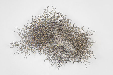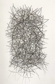 Es entstehen offene Gerüste, die an räumliche Skizzen erinnern: fragil, gespannt, architektonisch.