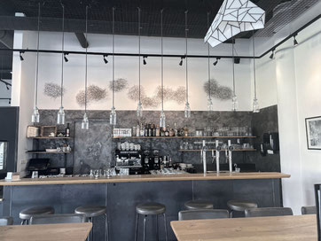 Diese Wandarbeiten bestehen aus gelöteten Drahtstrukturen - gebaut wie Linien im Raum.